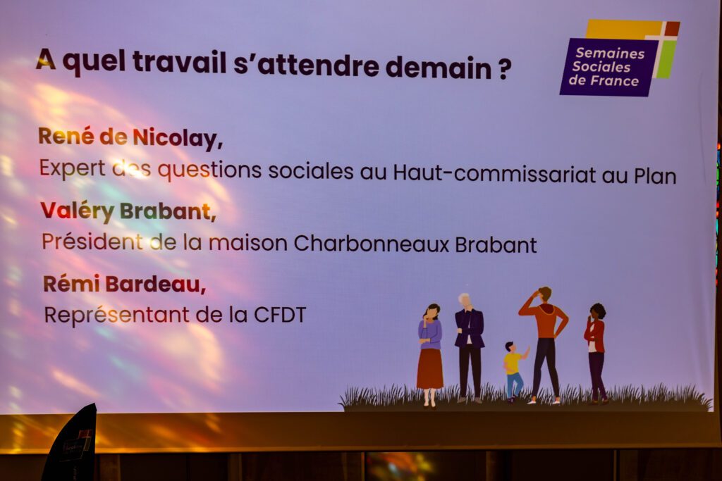 La première table ronde, avec René de Nicolay (Haut-commissariat au plan), Rémi Bardeau (CFDT) et Valéry Brabant (directeur général d’une entreprise), posa les grandes lignes de l’avenir du travail, en partant des perceptions des évolutions du travail par les actifs, complétées par des données objectives des tendances observées, ainsi que par l’analyse des principales causes de ces évolutions[1].