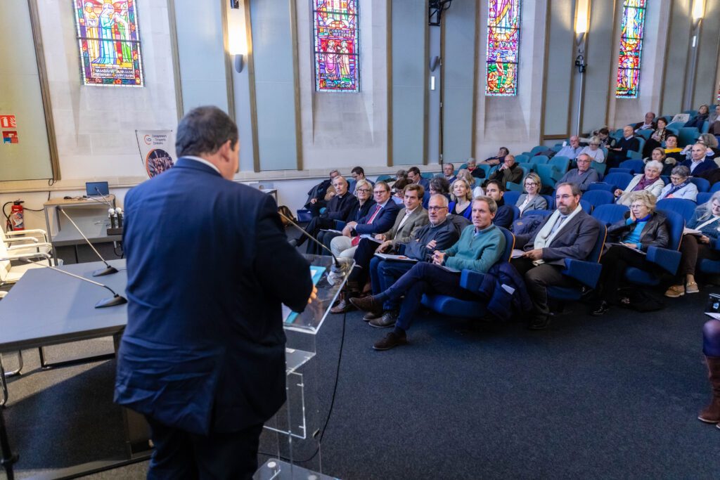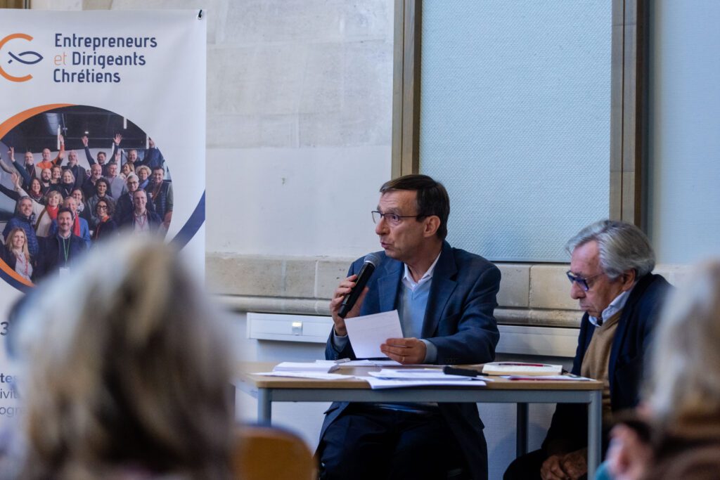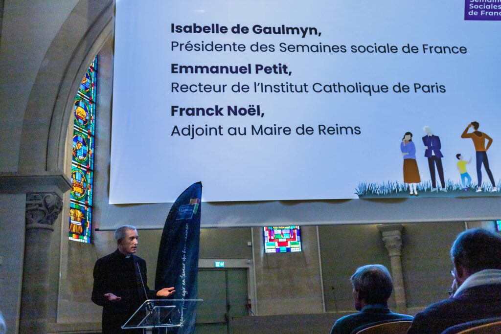 La première étape dans cette réflexion se déroula à Reims, le 12 octobre 2024, dans l’antenne régionale de l’Institut catholique de Paris. Elle fut construite avec EDC (Entrepreneurs et dirigeants chrétiens). Le parti pris choisi fut d’interroger l’avenir du travail ; comment se préparer à l’incertitude ? Au cœur de cette démarche prospective empruntée avec un regard d’espérance, l’ambition de discerner ce sur quoi s’appuyer pour donner du sens au travail et nourrir le bien commun, rappela Isabelle de Gaulmyn.