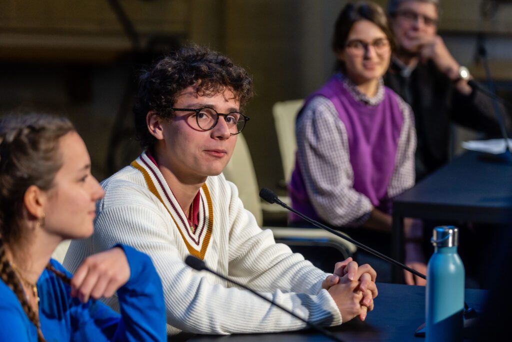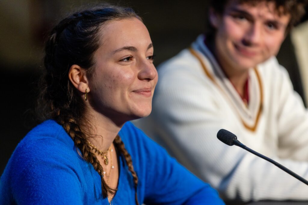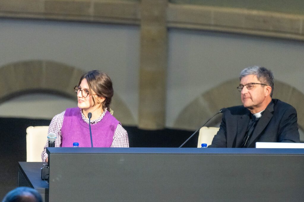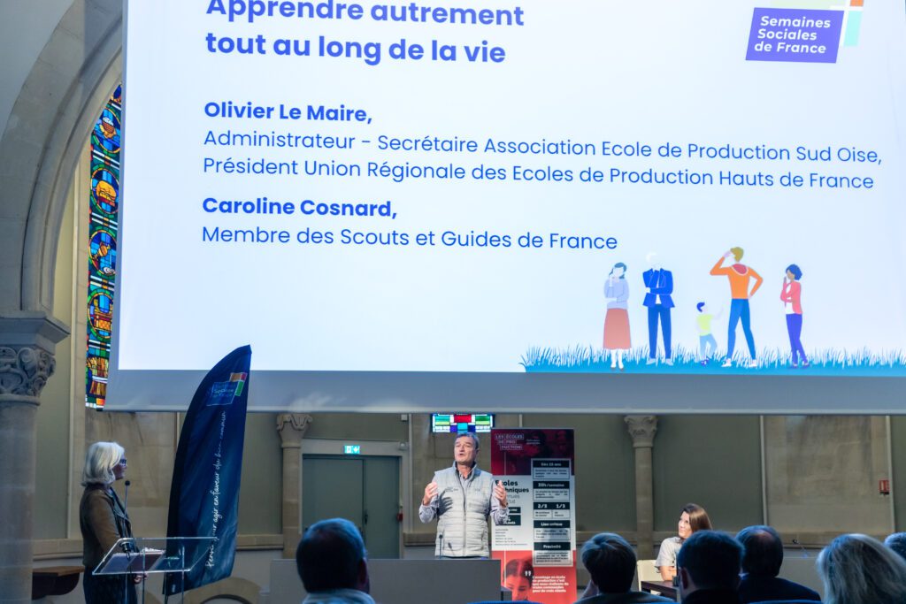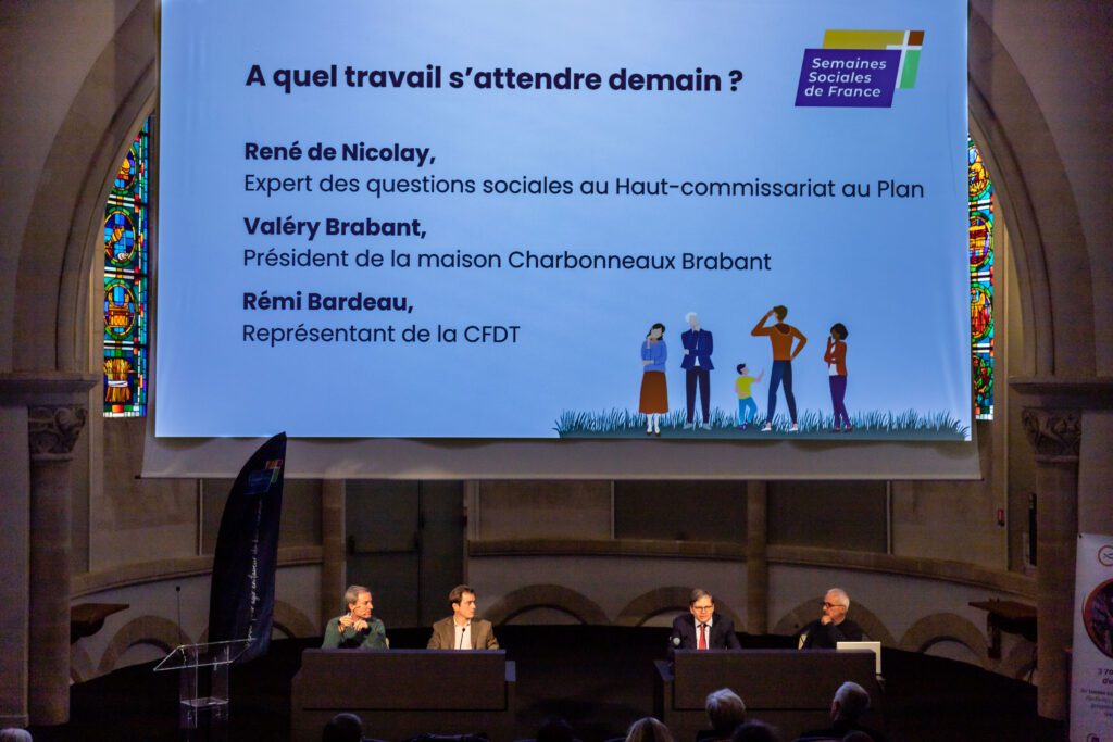 L’un des points forts des rencontres des Semaines sociales repose sur l’insertion de témoignages. Sur le thème du travail, il était intéressant de recueillir les attentes de trois étudiants chrétiens, Maude, Marc-Thomas et Marion. Ils ont exprimé leurs points d’inquiétude qu’ils imaginent dans le milieu professionnel : pression individuelle, manque de fraternité, non acceptation des différences, un monde où le bien-être n’est pas inné ! Ils ont dit aussi leurs points d’espérance : protéger la Création, contribuer à réaliser un monde plus « équilibré ». Ils ont affirmé qu’être chrétien a du sens dans le cadre du travail, écartant la possibilité de travailler dans une entreprise qui soutiendrait des orientations à l’encontre de leurs valeurs.