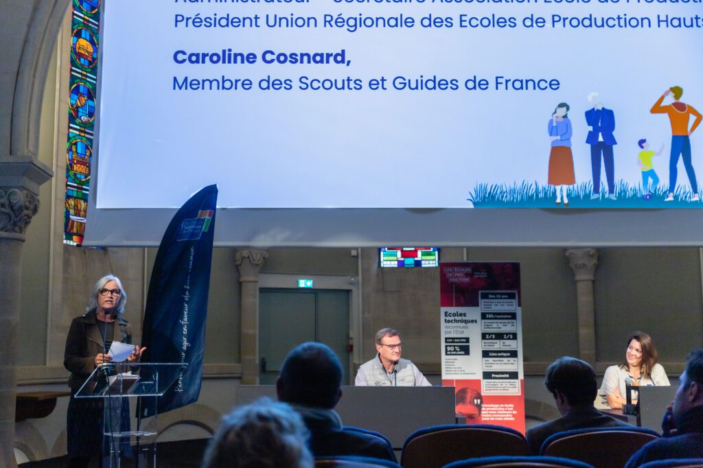 Former différemment sera nécessaire demain pour pouvoir contribuer utilement à la société. Mais que peuvent nous apprendre les acteurs qui expérimentent déjà d’autres manières de développer ses compétences ? Ce fut le thème de la seconde table ronde réunissant Caroline Cosnard, Directrice France de Sens of Life, par ailleurs très engagée au niveau régional chez les Scouts, Olivier Le Maire pour l’association des Écoles de Production, avec Anne-Sophie de Quercize, présidente de l’Observatoire Pharos et vice-présidente des SSF pour l’animer.