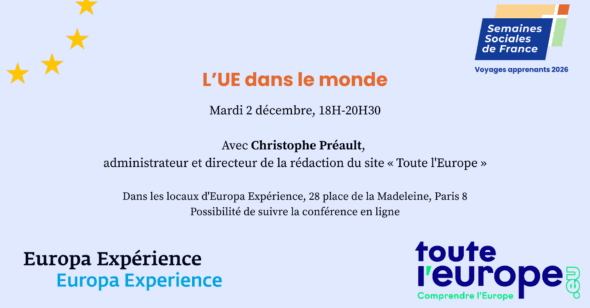 Le mardi 2 décembre, l’équipe des voyages apprenants des SSF propose une conférence sur « L’UE dans le monde » avec Christophe Préault, administrateur et directeur de la rédaction du site « Toute